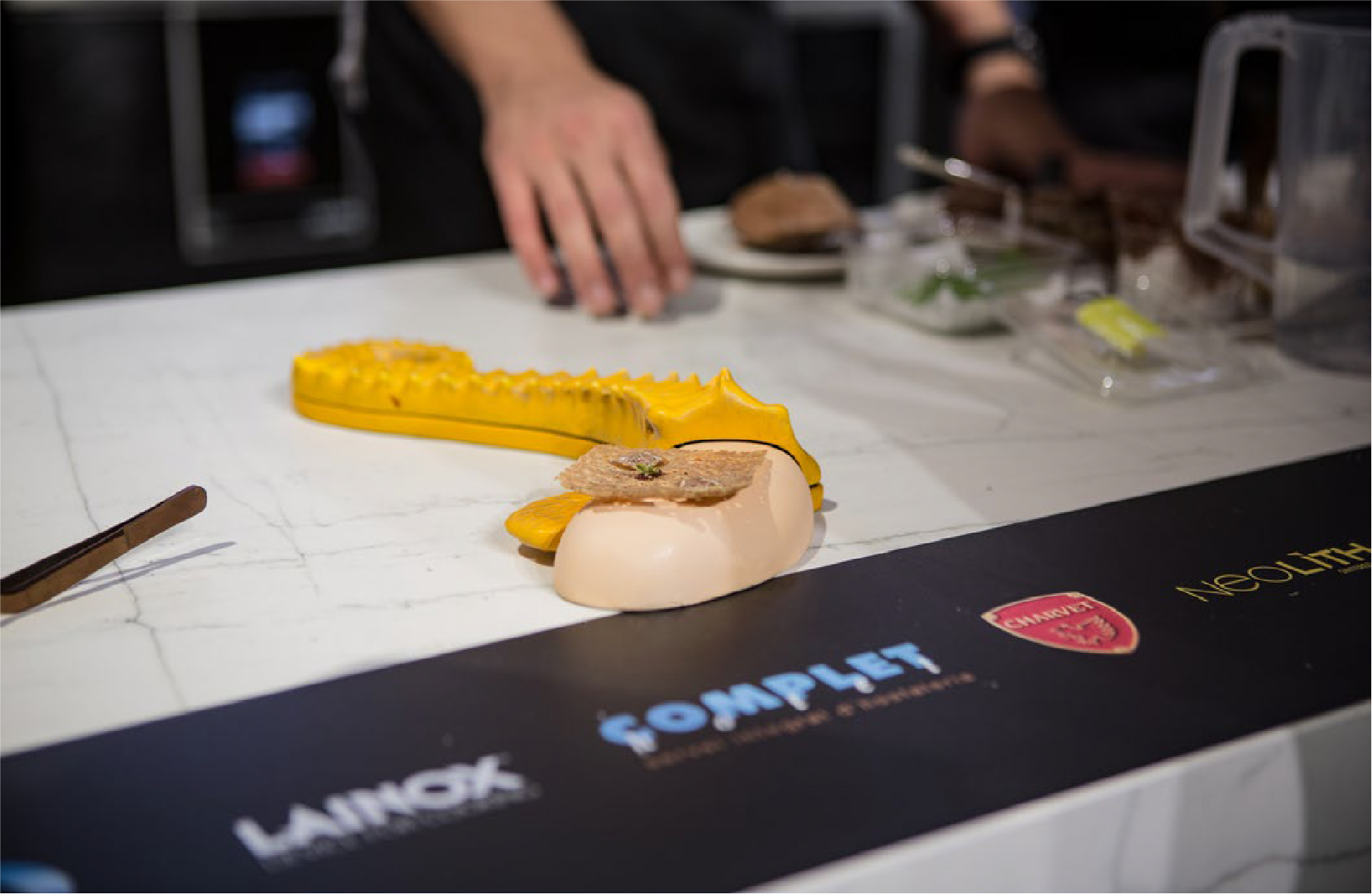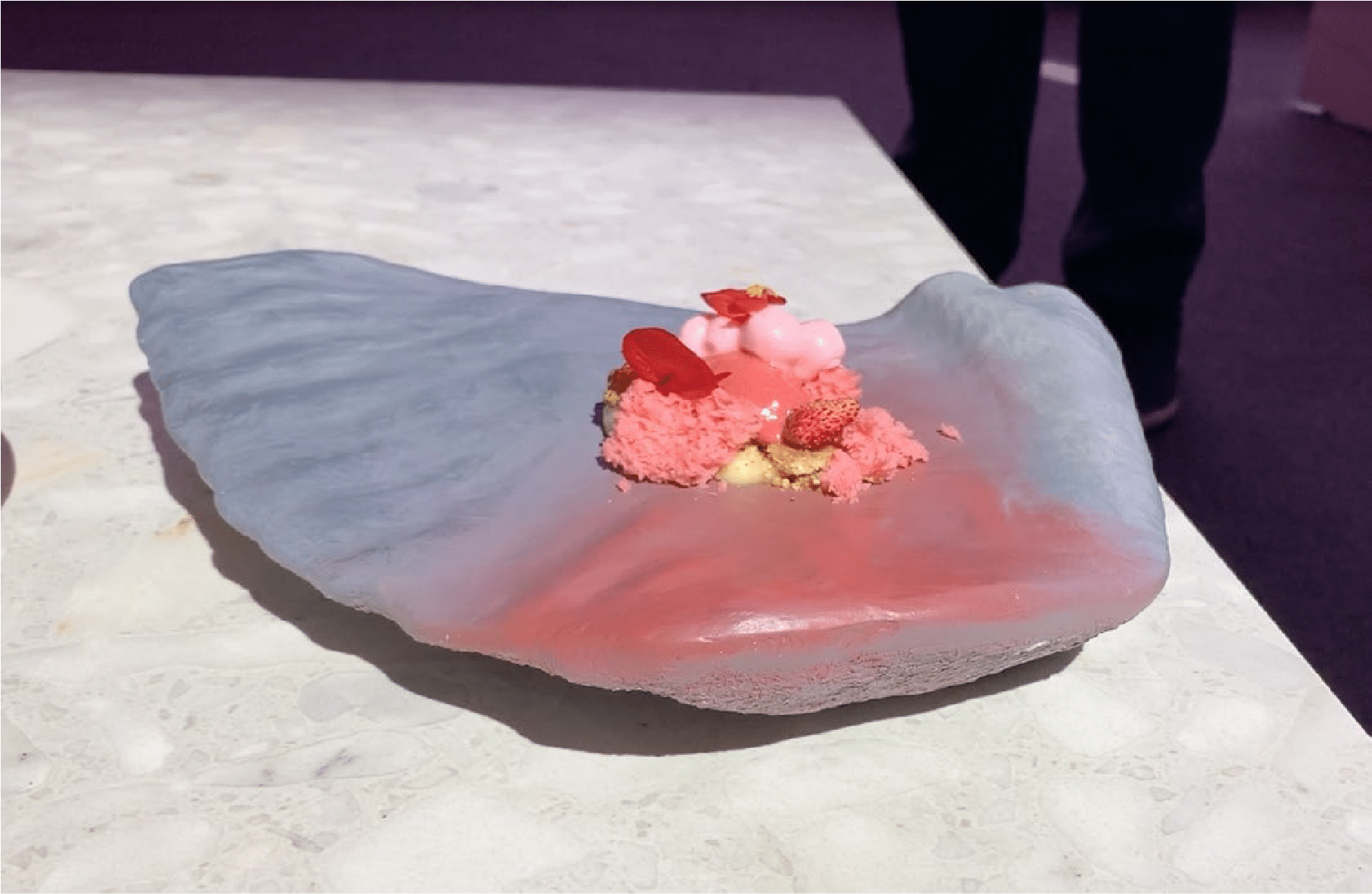 To complement this vision, a bespoke collection of nine “estrambotic” plates was designed, capturing elements from the artwork and transforming them into extraordinary tableware, each piece serving as an extension of the art itself